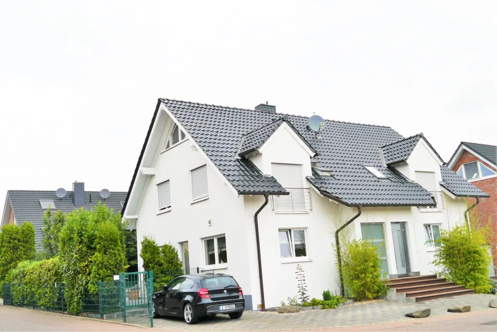 + Dach mit hochwertigen mattglänzenden Tonpfannen gedeckt