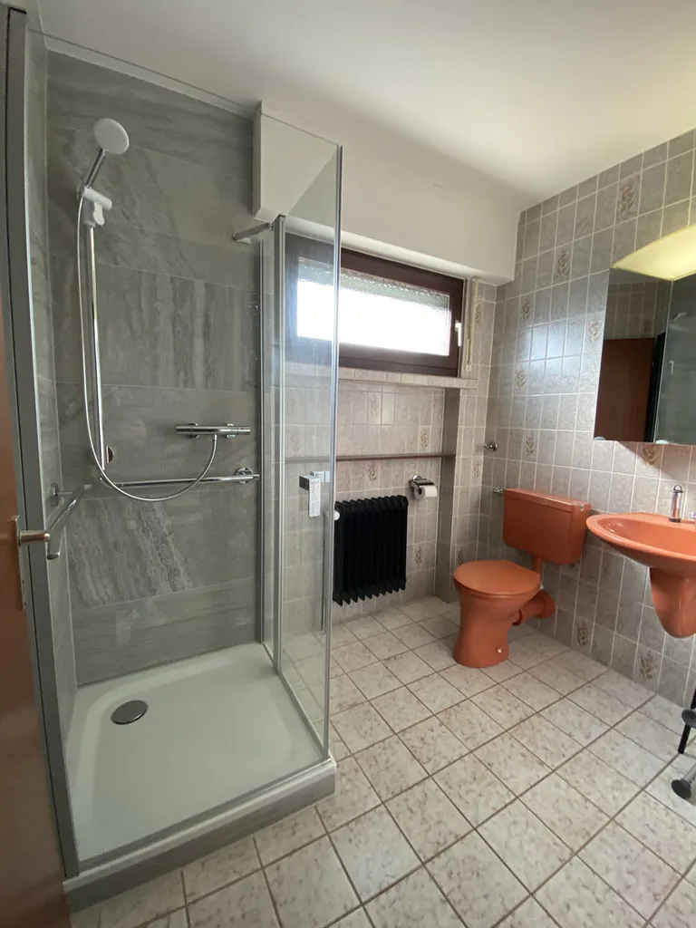 Bad mit Dusche, WC, Waschbecken, Fenster
