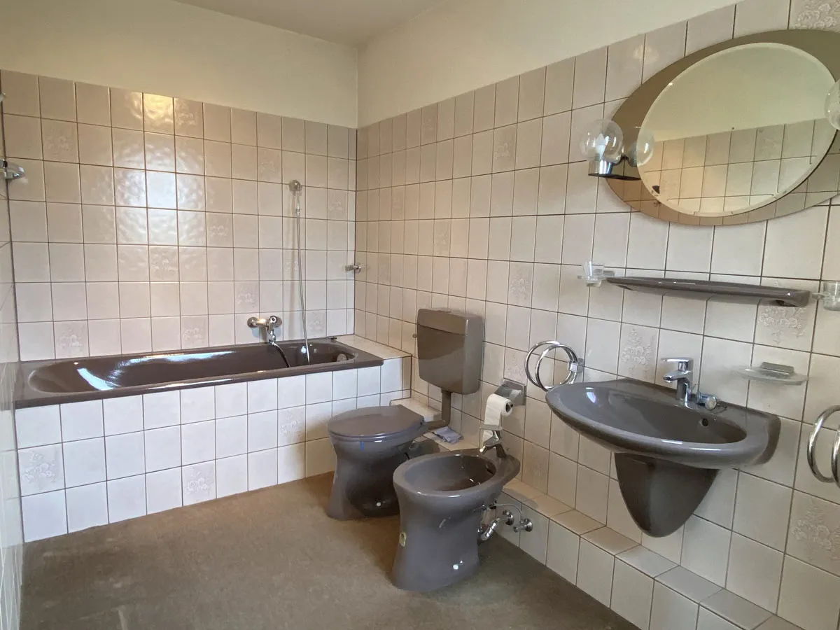 Bad mit Wanne, Waschbecken, Bidet, WC, Fenster
