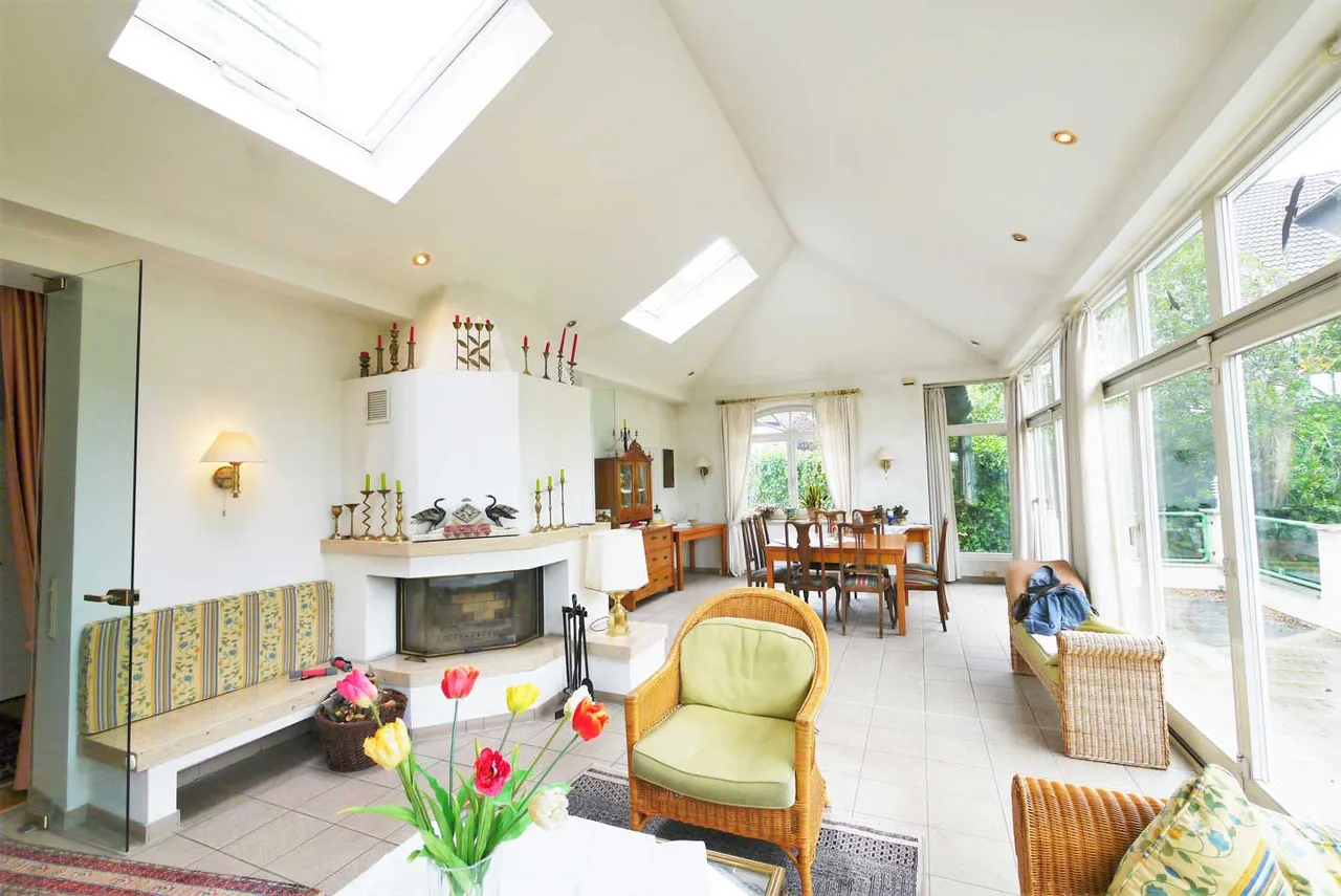 großzügiger, ca. 45 m² firsthoher Wohn-Wintergarten mit Wohn-Esszimmer,
