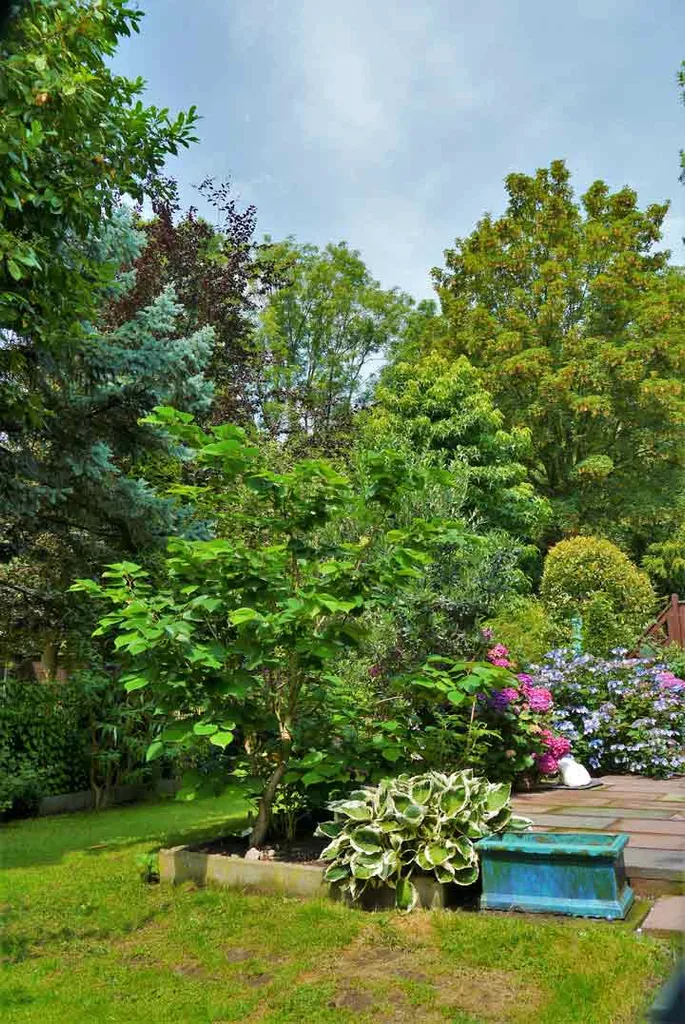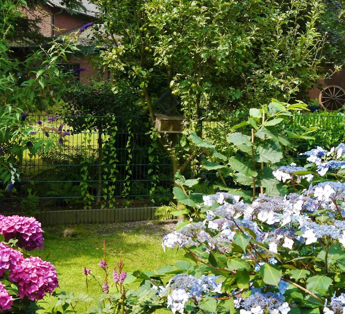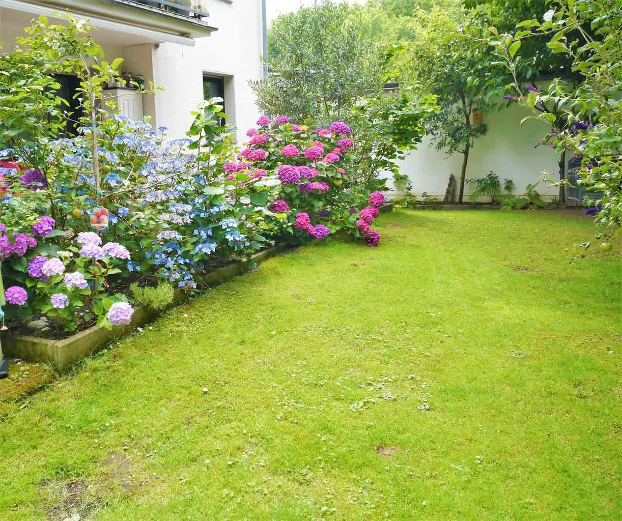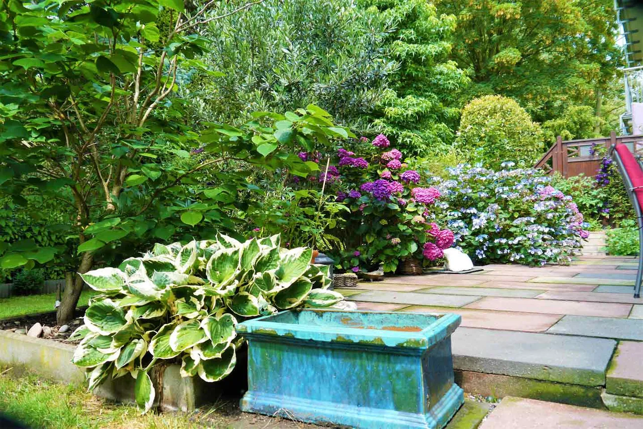 + herrlicher Garten mit schöner Bepflanzung umgeben von gepflegten Nachbargärten
