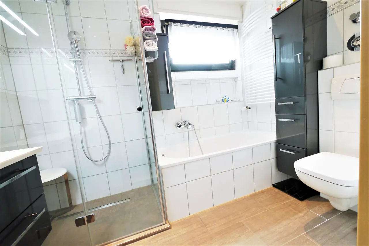 + modernes, neuwertiges Bad (2015) mit Dusche, Wanne, Tageslicht