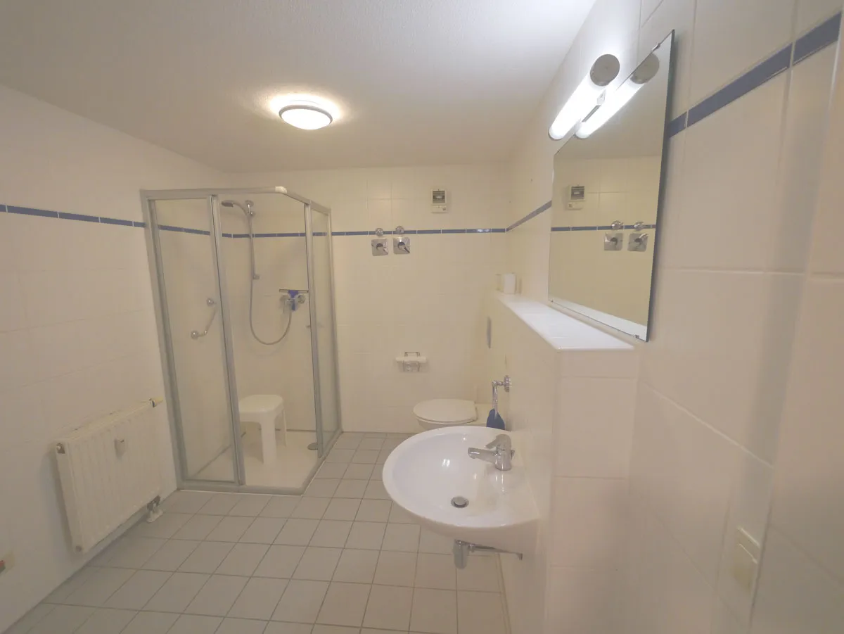 - Bad mit Dusche, Wc und Waschbecken,