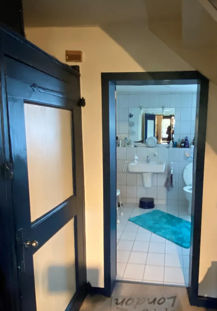5 Zimmer mit niedriger Holzbalkendecke unter 2 m.