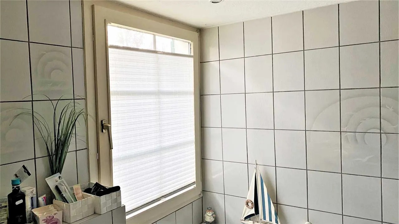Bad mit Tageslichtfenster, Wanne, Dusche und WC,