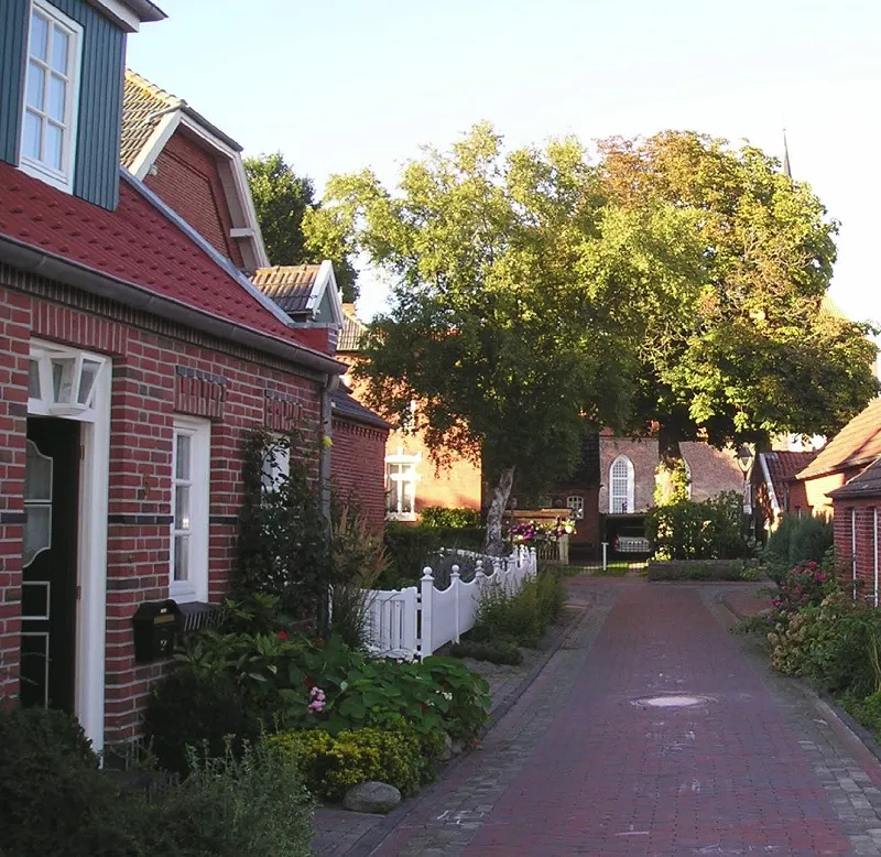 Angrenzende schöne, nach friesischer Art mit Klinkersteinen